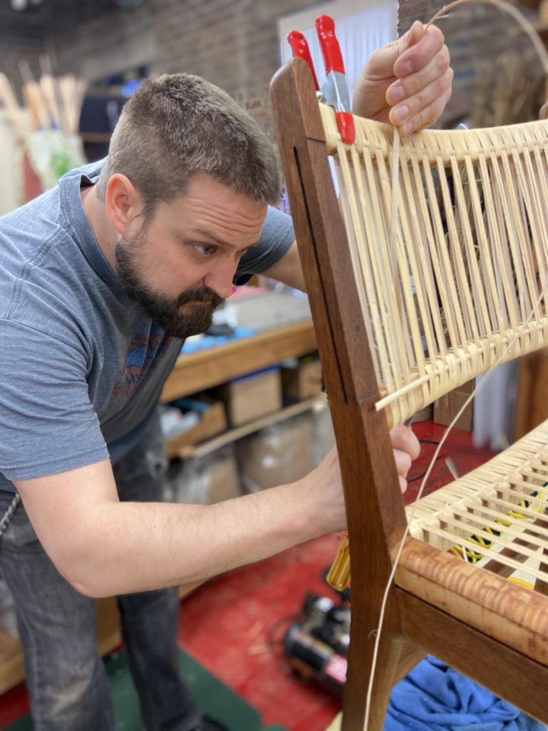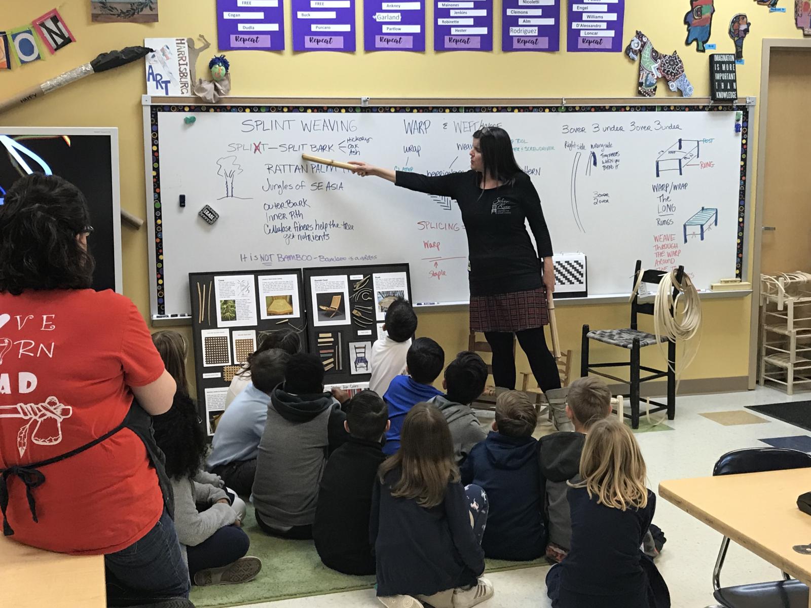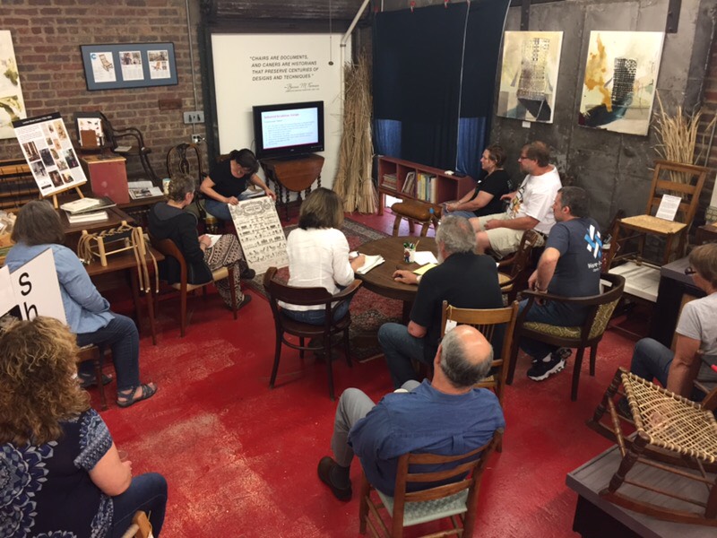 Take a field trip to our Studio with your organization or school class. We tailor the program to suit your interests in design, craft as a business, kids programs, STEAM. We’ve worked with Winterthur Material Culture PhD students, West Hendersonville High Interior Design classes, Haywood Community College Professional Craft students, Penland woodworking students, Weavers & Woodworking Guilds, UNCA, Warren Wilson, Hanger Hall, Carolina Day School, the United Way Kids at Work Week, Lifelong Learning programs, and have visited elementary schools as part of an Arts Integration Program. Chair seat weaving is history, botany, social science, physics, geometry, process engineering, design, material culture, and of course, traditional craft!
