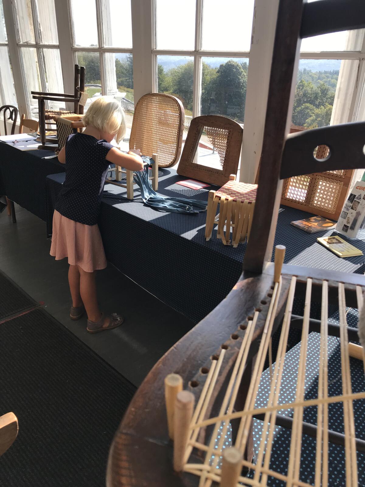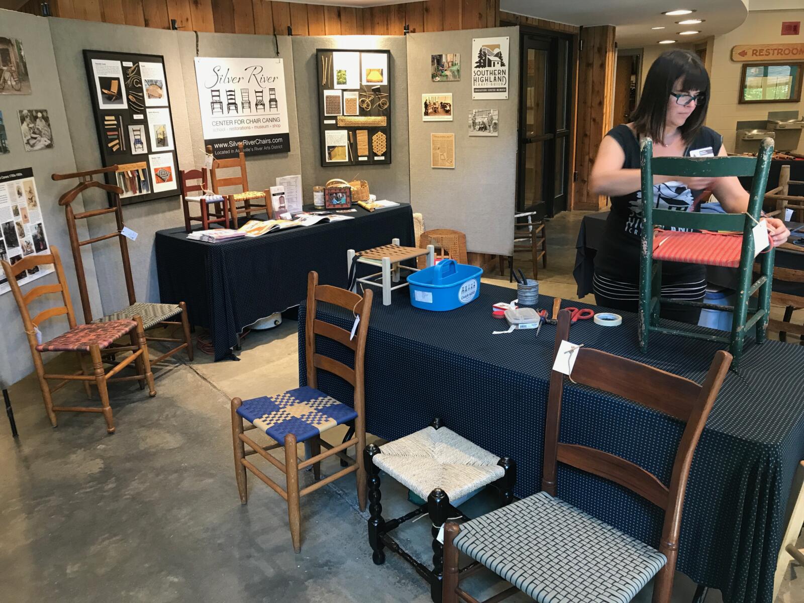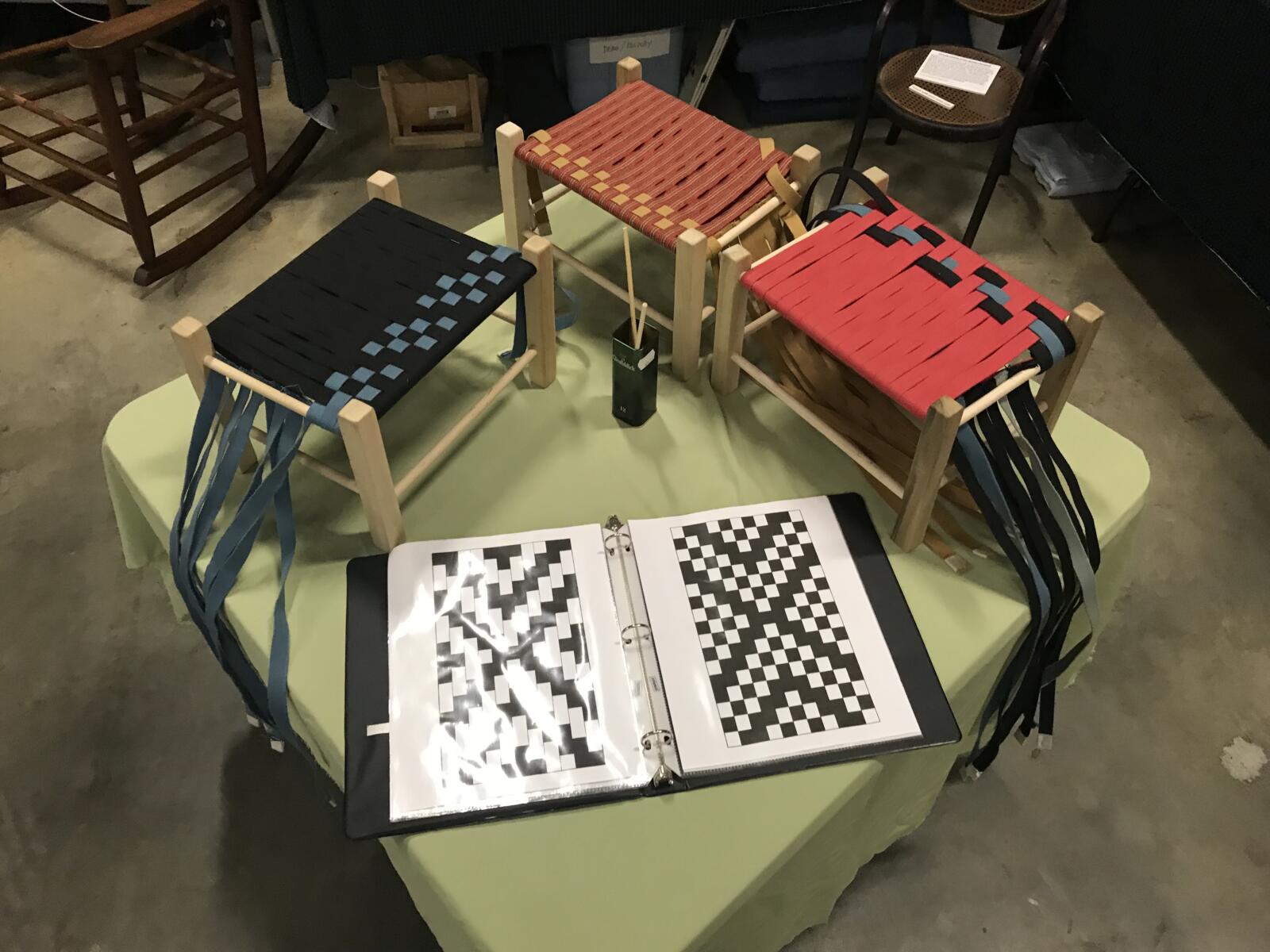 Harrisburg Elementary School kids class Danish Modern Restoration in progress. We bring in chairs that highlight your nerdy ambitions. Demonstration at The Folk Art Center, Asheville, NCDemonstration at Parkway Crafts, Blowing Rock NCDemonstration at The William King Museum, Abingdon VAChair Nerds on location at the Salem College Chair LibraryLecture at William King Museum, Abingdon VADemo-DisplayOn WLOS Morning Show for The Craft Fair of The Southern HighlandsHands-on weaving Station Weavers would sit out on St. Paul’s Church steps and cry “Chairs to Mend”rattan palm stalk with hand-caned chairAt Salem College Chair LibraryAt the Virginia Historical Society for the Art of Seating ExhibitChair caning ephemera: from a cigarette carton. English rush weaverEngraving of bulrush bundleWe don’t travel light, we bring books and resources for an overwhelmingly nerdy presentation.We don’t travel light-we bring visual aids, materials samples, and historical ephemera for a rich presentation.2016 Annual Gathering of The SeatWeavers’ Guild At The Island Farm, Manteo NCGet ready to geek out on chairs….Photo by Matt Rose.Teaching Shaker Tape footstools to kids Chair Nerds do not travel lightDemonstration at Folk Art Center, Asheville NCThe Chair Nerd Summit 2019Chair Nerds on LocationDanish cord sample…photo by Matt Rose.