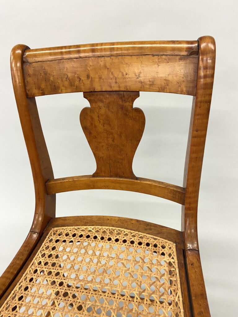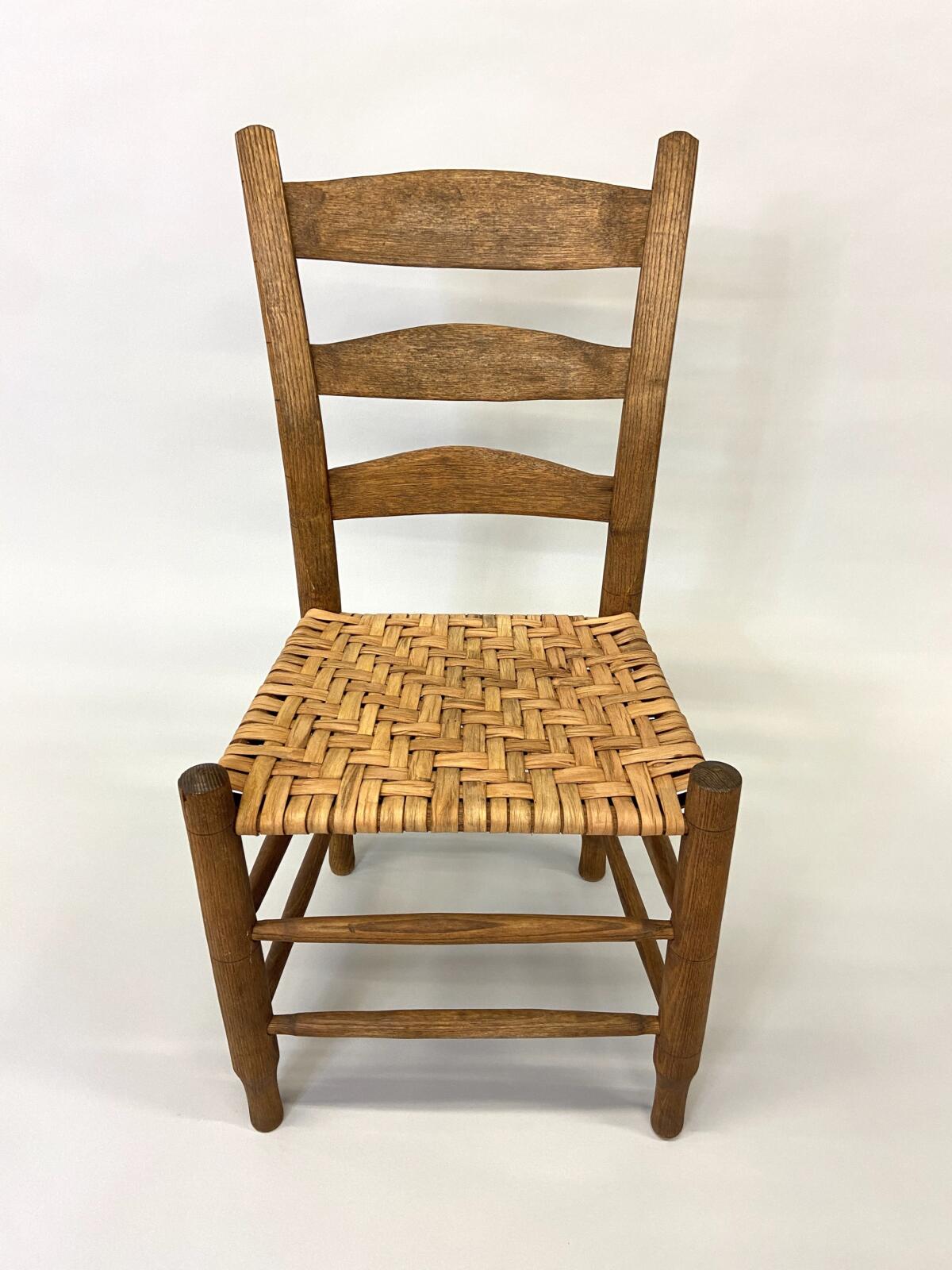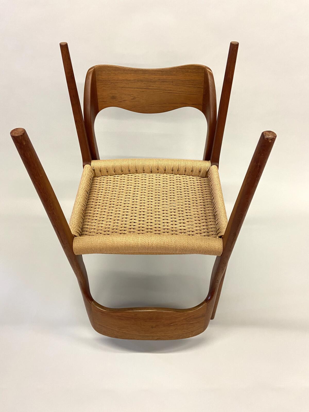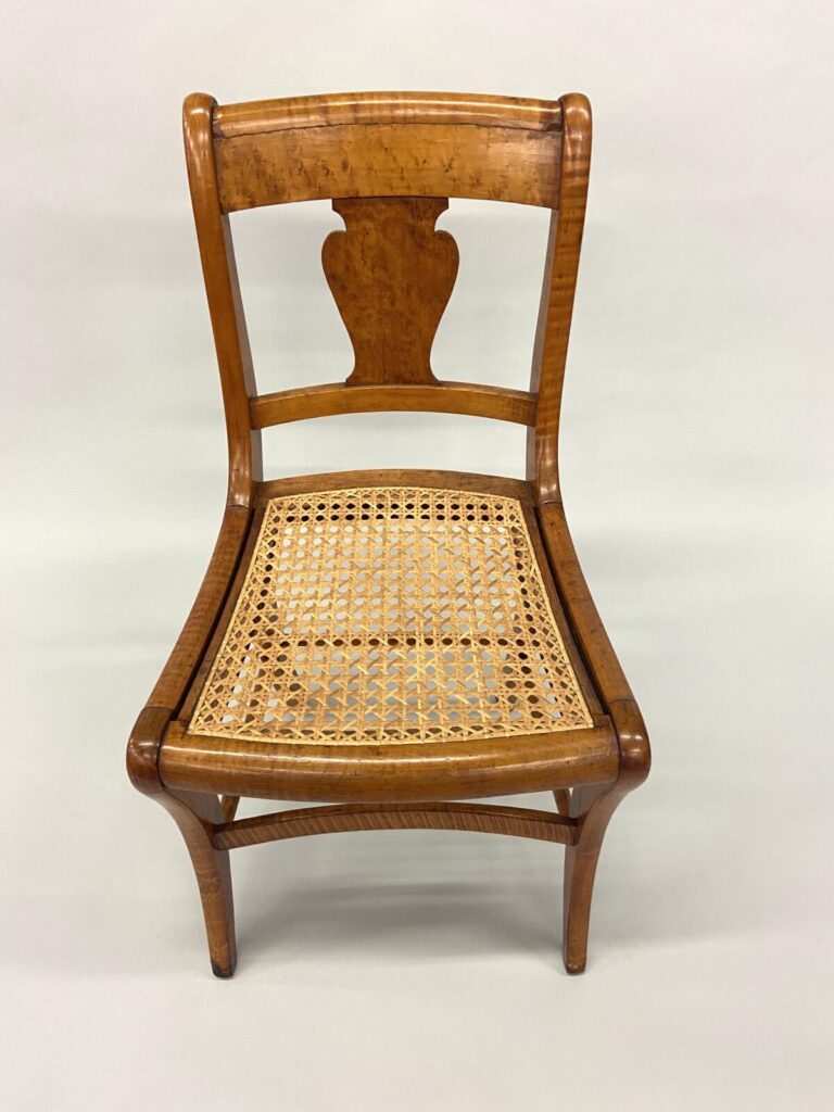 Møller No. 71 with Danish CordMøller No. 71 with Danish CordMøller No. 71 with Danish Cord – undersideMøller No. 71 with Danish Cord -with L nails and stampMid-Century Modern Møller No. 71 Chair with laced Danish Cord, woven by Dave Klingler and donated by Julia FossonJennie Alexander Chair with Shaker tape woven by Brandy Clements, chair frame made by Rue Alan DillehayShaker tape seats are traditionally woven in checkerboard on top and herringbone twill on bottom Shaker tape in flame stitch, chair frame of white oakShaker tape chair donated by Rue Alan Dillehay and woven by Brandy ClementsHickory Bark Seat by Brandy Clements on Mace chairTapering the bark at the back rail allows for no fill-ins on the sides.Mace chair frame donated by Parkway Crafts in Blowing Rock, NCThe bottom of the chair should look as good as the top.Authentic Hickory Bark on Mace Side ChairDetail of tiger maple, a common Southern wood.Fresh caned seats are a light and age over time – this one is about 5 years old at the time of photographing.Curved Seats require you to weave a little differently than flat seats. It’s not harder, just different. You have to maintain the curve or you will break your chair frame. Empire Side Chair woven by Brandy ClementsVase shaped back spat and klismos style legs make this an exceptional chair. Hand-woven Chair Caning, aka Laced Caning