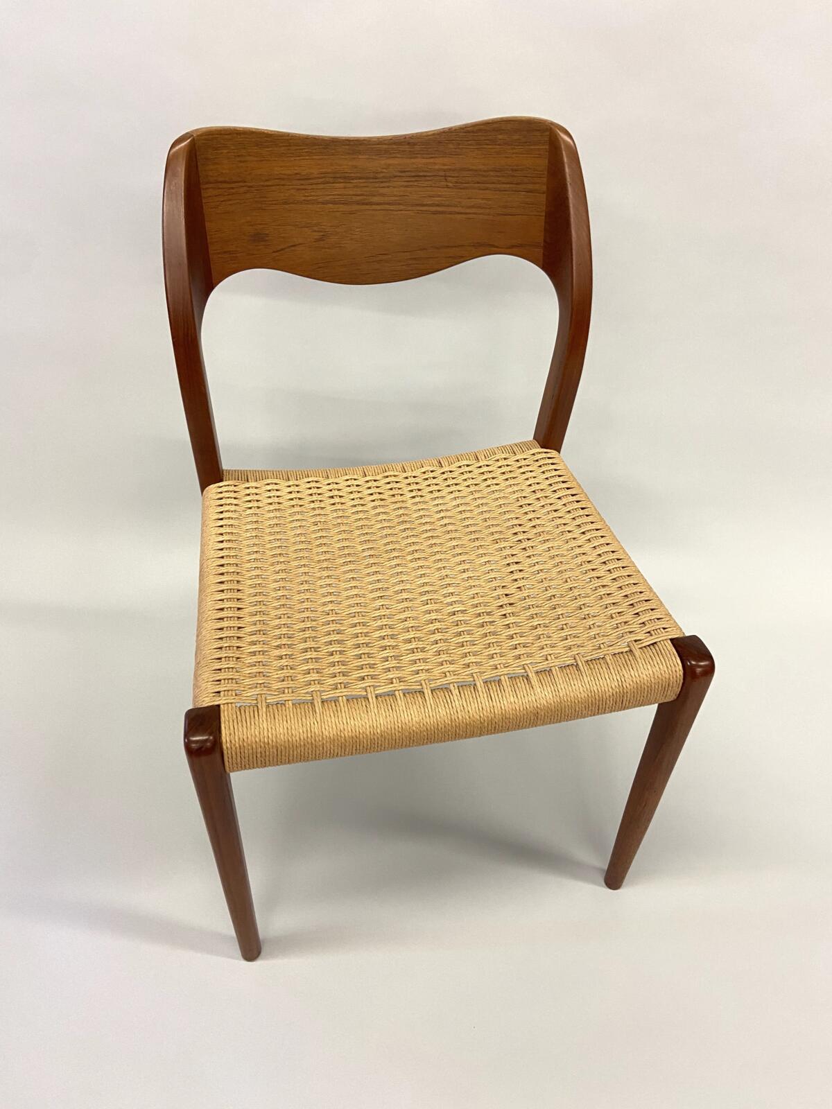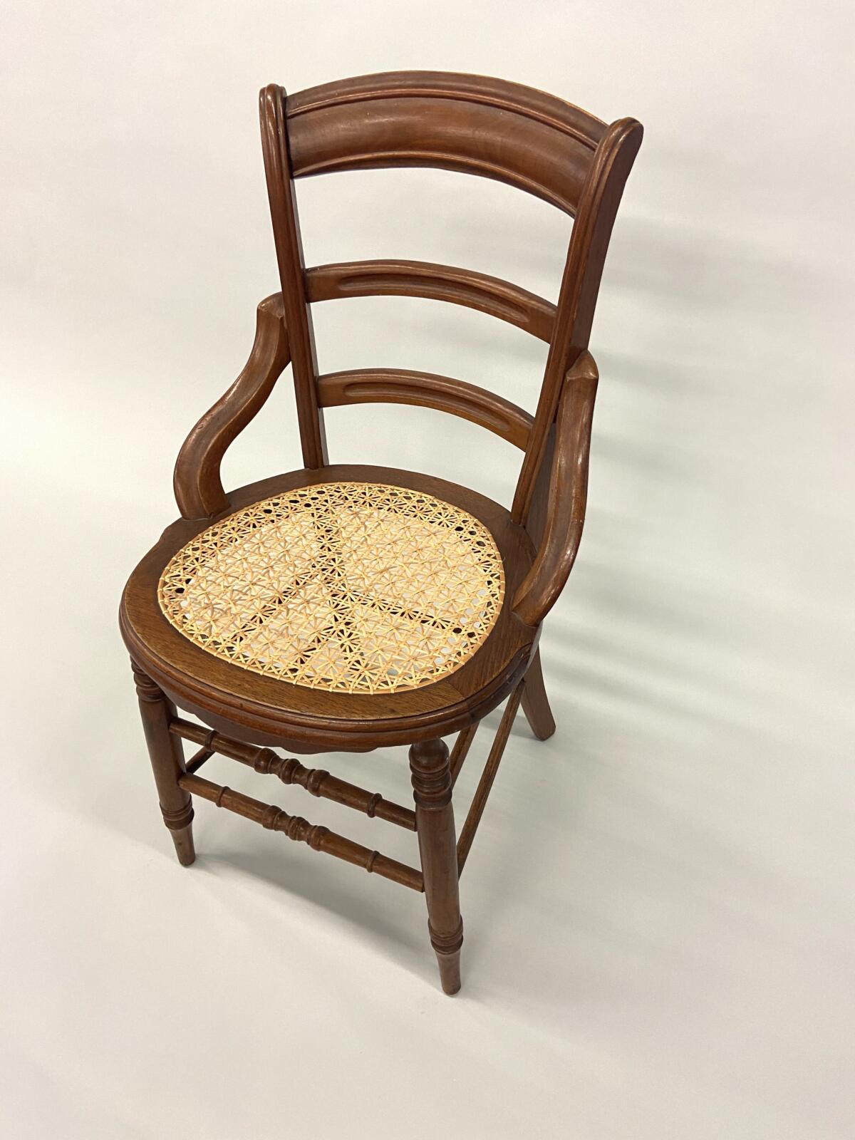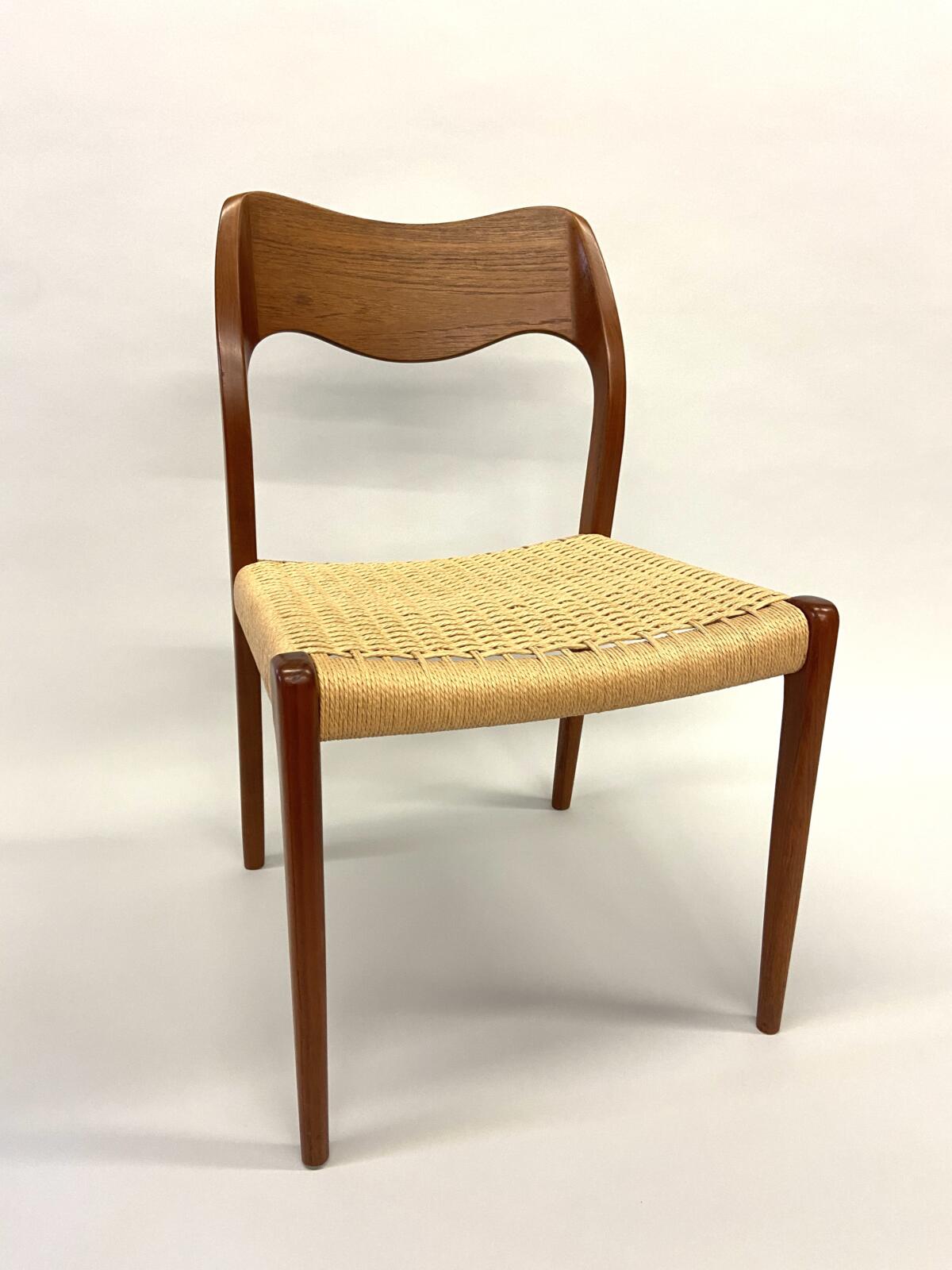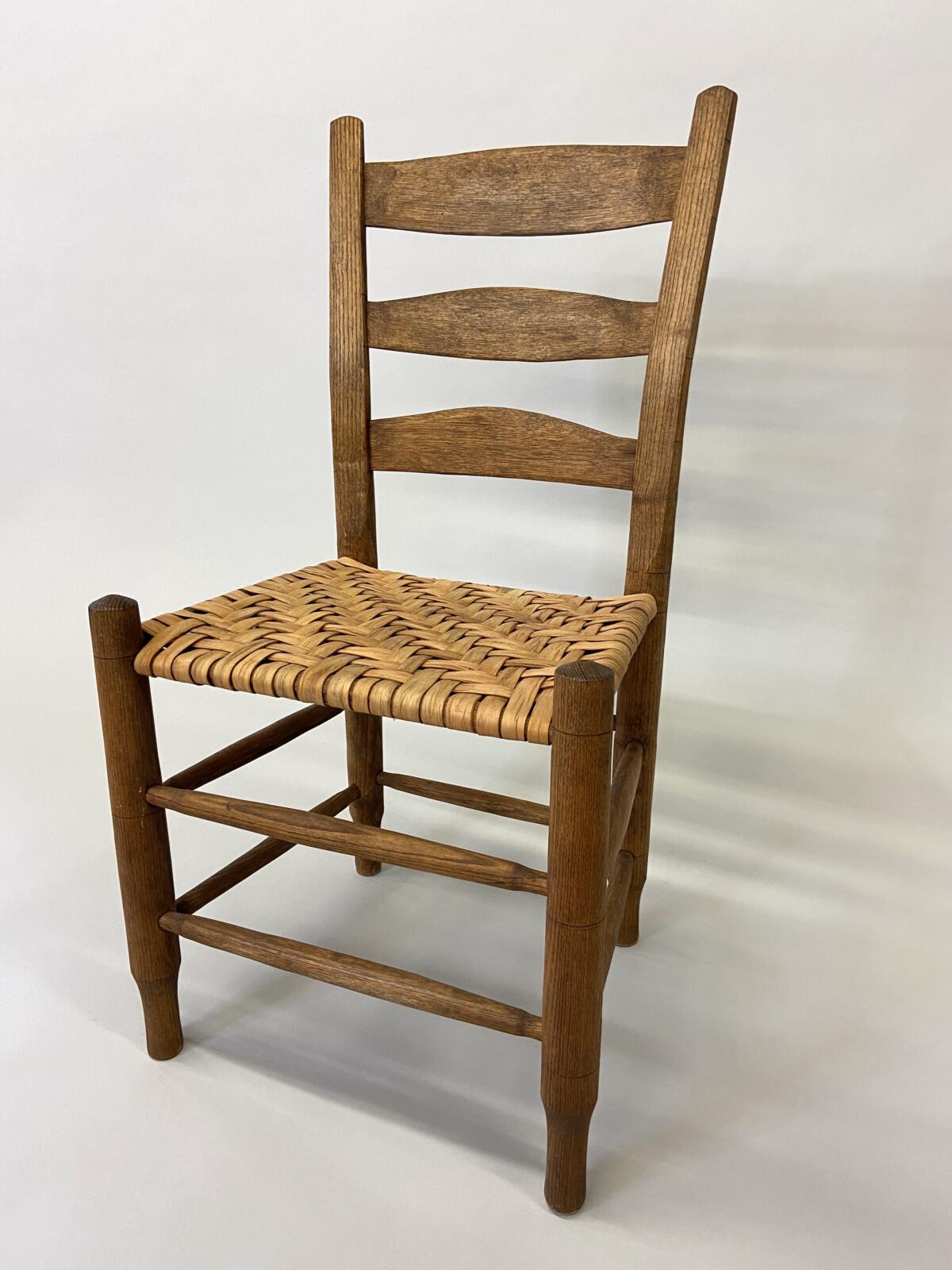 Møller No. 71 with Danish CordMøller No. 71 with Danish CordMøller No. 71 with Danish Cord – undersideMøller No. 71 with Danish Cord -with L nails and stampMid-Century Modern Møller No. 71 Chair with laced Danish Cord, woven by Dave Klingler and donated by Julia FossonJennie Alexander Chair with Shaker tape woven by Brandy Clements, chair frame made by Rue Alan DillehayShaker tape seats are traditionally woven in checkerboard on top and herringbone twill on bottom Shaker tape in flame stitch, chair frame of white oakShaker tape chair donated by Rue Alan Dillehay and woven by Brandy ClementsHickory Bark Seat by Brandy Clements on Mace chairTapering the bark at the back rail allows for no fill-ins on the sides.Mace chair frame donated by Parkway Crafts in Blowing Rock, NCThe bottom of the chair should look as good as the top.Authentic Hickory Bark on Mace Side ChairDetail of tiger maple, a common Southern wood.Fresh caned seats are a light and age over time – this one is about 5 years old at the time of photographing.Curved Seats require you to weave a little differently than flat seats. It’s not harder, just different. You have to maintain the curve or you will break your chair frame. Empire Side Chair woven by Brandy ClementsVase shaped back spat and klismos style legs make this an exceptional chair. Hand-woven Chair Caning, aka Laced Caning