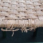 (and almost every other chair we see) is the cord or cane breaking along the sharp edge of the front rail. For all of the accolades about precision, design, and craftsmanship, they neglected to shave down the 90 degree angle where the sitter’s legs press the cord into the sharp wood, eventually causing the cord to break all along the front and back edges. There must be a conspiracy between seat weavers and chair makers, because this happens ALL THE TIME.